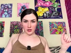 Brunette transsexual in leopard lingerie spreads bubble butt